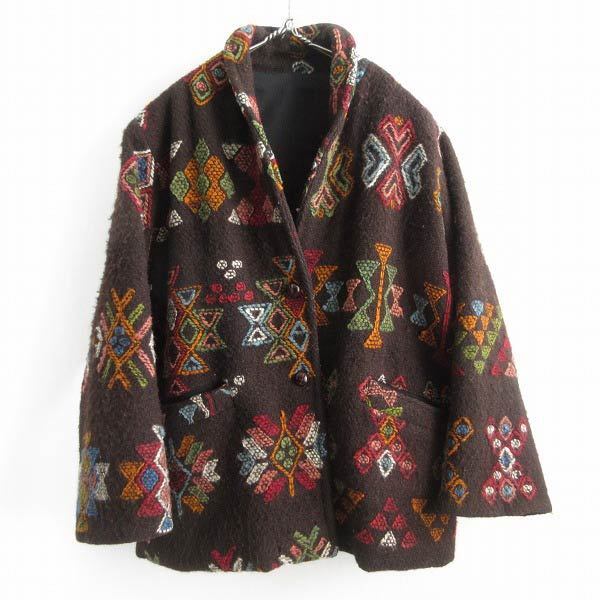 > 一点物 刺繍 総柄 ウール ジャケット レディース ダークブラウン系 ビンテージ グラニースクエア ハンドメイド d144-18-0126ZVW