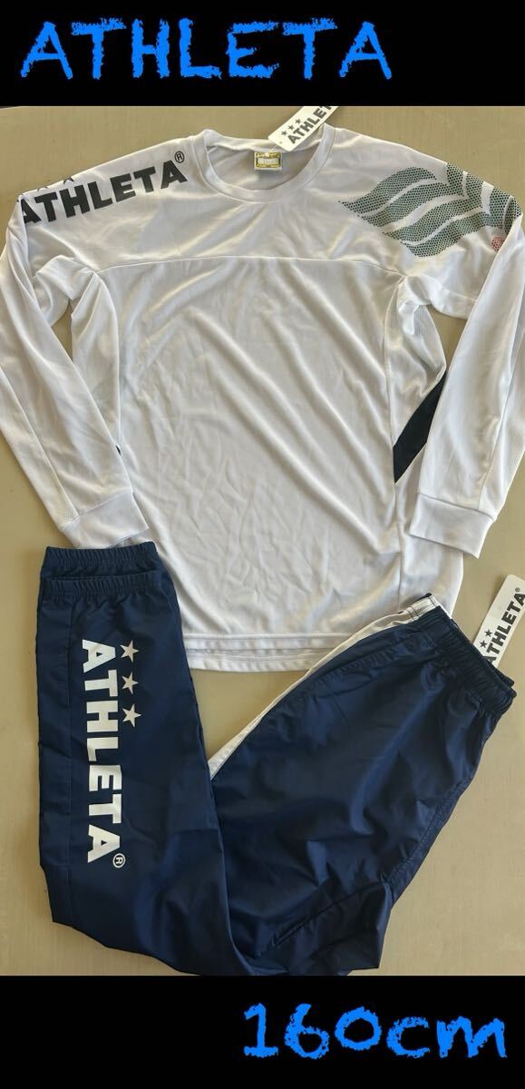 - 新品タグ付き 160cm ジュニア長袖プラクティスシャツ &ウインドパンツセット ホワイト×ネイビー