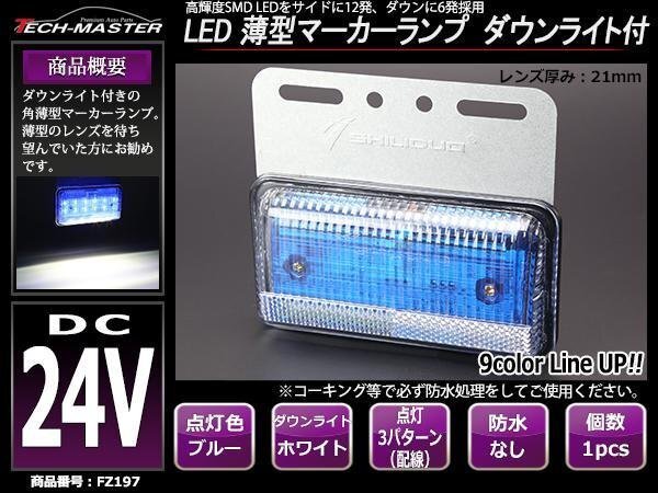 - 24V 薄型LEDマーカーランプ ブルー発光 / ダウンライト ホワイト発光 角型 トラック サイドマーカー 路肩灯 FZ197