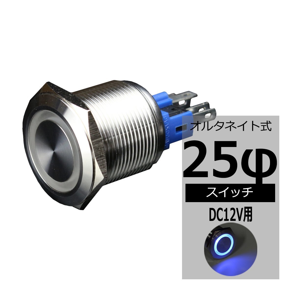 - φ25 プッシュスイッチ LEDリング付き DC12V イルミ 防滴 ブルー IZ097-B