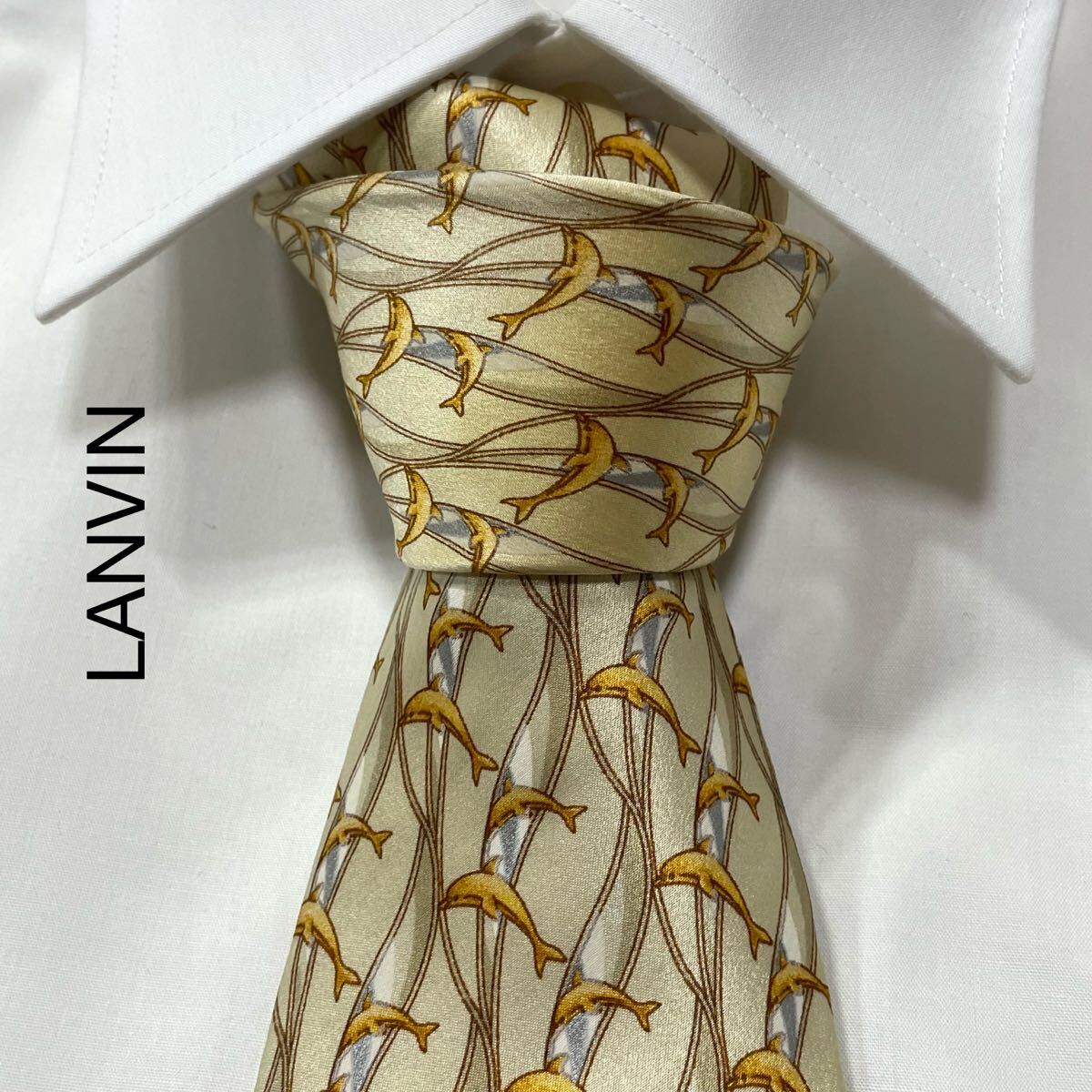 - LANVIN ランバン イルカ パターン柄 シルク ネクタイ フランス製 クリーム TG2834