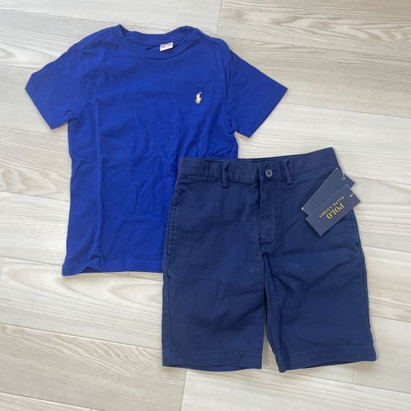 - 新品 未使用 タグ付 ラルフローレン POLO キッズ ショートパンツ サイズ6 紺系 & 半袖Tシャツ4/4T 110 青系 セット まとめ売り