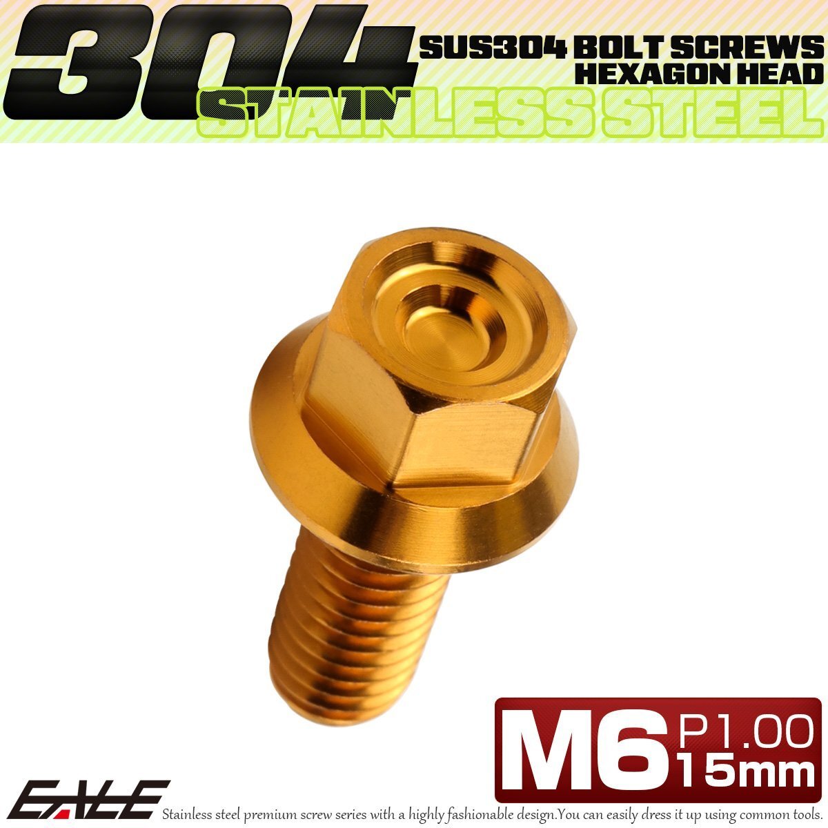 - M6×15mm P1.00 フランジ付き 六角ボルト ヘキサゴンヘッド CNC SUS304 ステンレス ゴールド TB1272