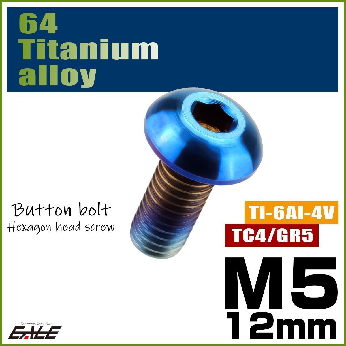 > M5×12mm P0.8 64チタン製ボタンボルト 六角穴 ボタンキャップスクリュー チタンボルト 焼きチタン ダークカラー JA593
