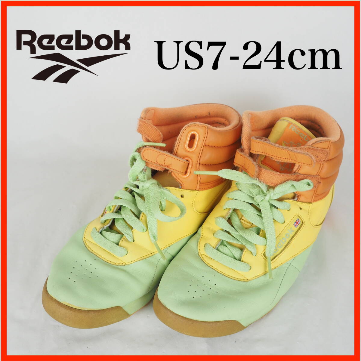 > OK5455*Reebok*リーボック*レディースハイカットスニーカー*US7-24cm*グリーン・イエロー・オレンジ