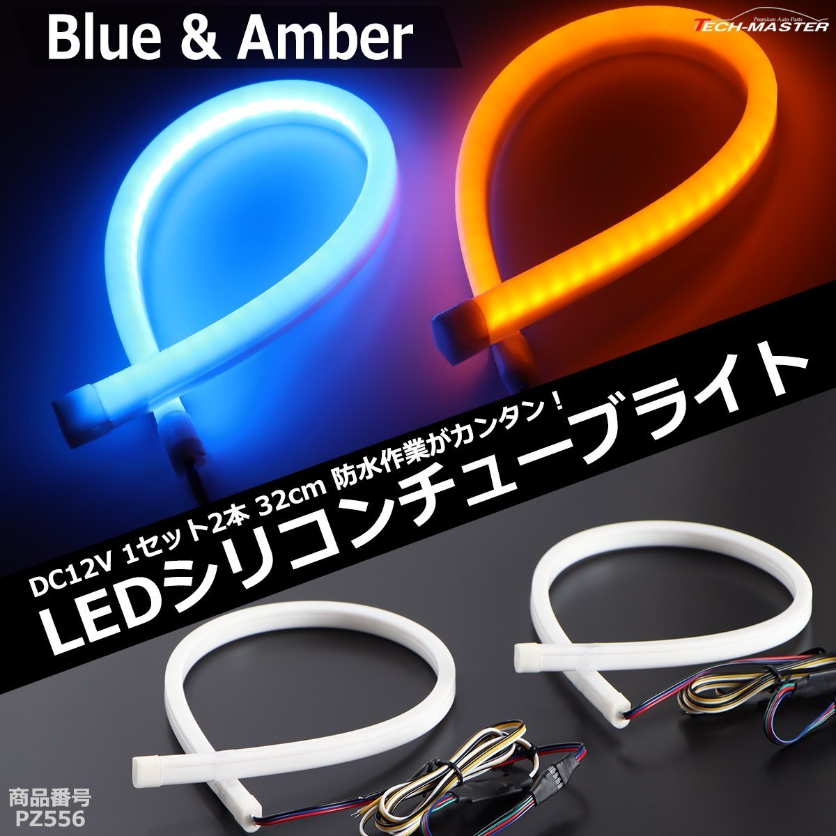 > ヘッドライト アイライン LEDシリコンチューブ 32cm ブルー/アンバー DC12V 2色発光 ウインカー対応 汎用 PZ556