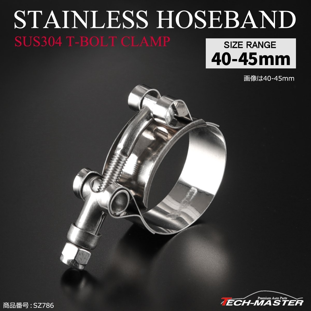 - 汎用 ステンレス ホースバンド Tボルトクランプ フラット SUS304 40?45mm 幅19mm シルバーカラー 1個 SZ786