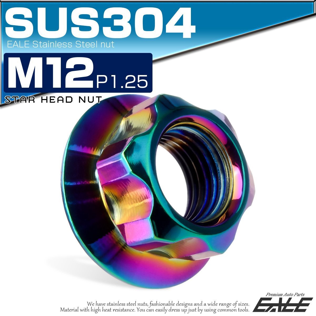 - フランジナット M12 P1.25 セレート付 スターヘッド デザインナット SUS304 フランジ付き 六角ナット レインボー TF0259