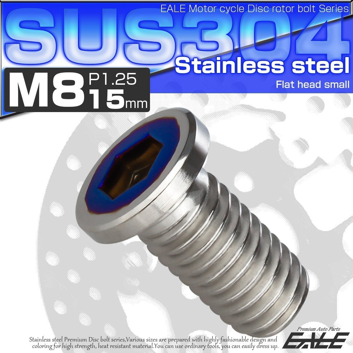- ヤマハ用 ブレーキ ディスク ローター ボルト M8×15mm P=1.25 SUS304 ステンレス フラットヘッドミニ シルバー/ブルー TD0325