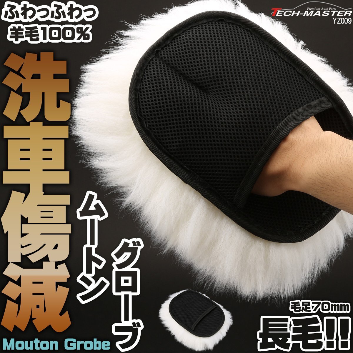 - ムートン グローブ 羊毛100% 毛足70mm 長毛 洗車 傷減 防止 YZ009