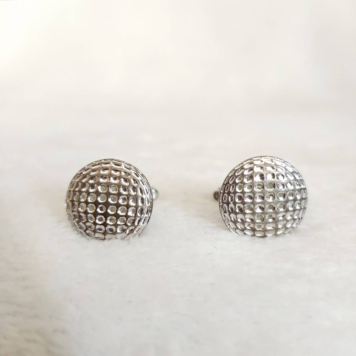 - カフス ヴィンテージ 銀製 SILVER刻印 カフリンクス カフスボタン ゴルフボール型 デザイン シルバー レトロ アンティーク