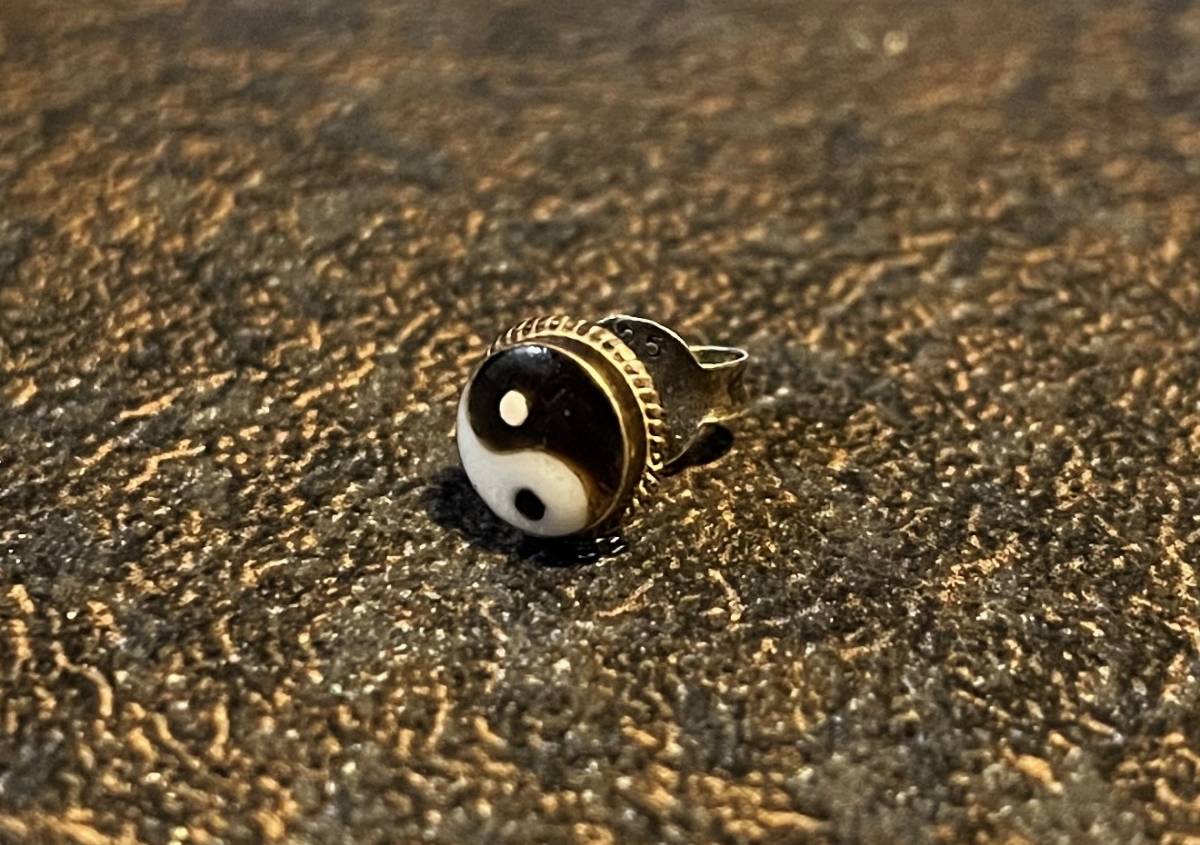 > デッドストック80s70sビンテージSILVER925シルバー陰陽ピアス七宝焼き銀製80年代70年代1980s1970sデッド経年