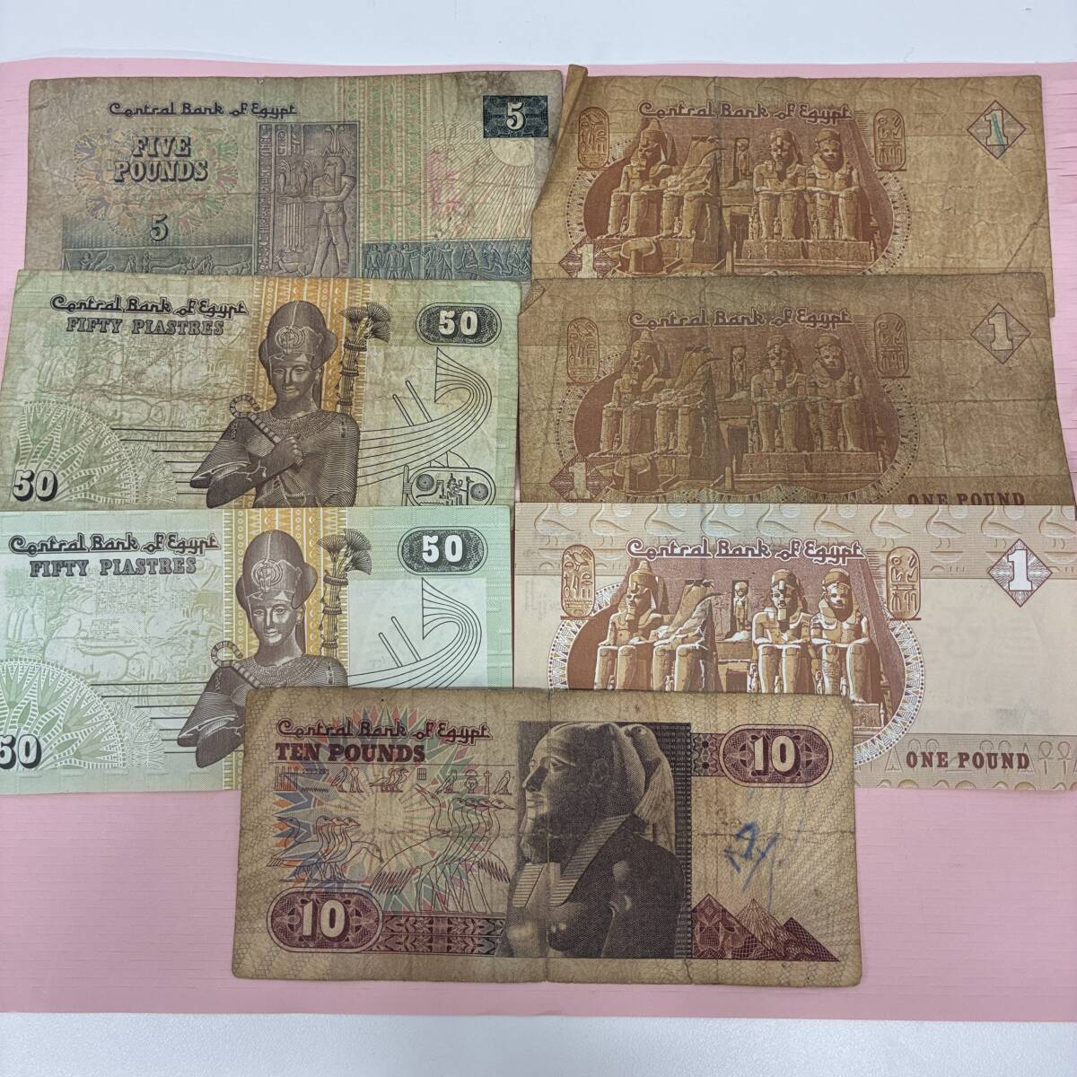 - ★エジプト 紙幣 1ポンド 5ポンド 10ポンド 50ピアストル 計7枚 経年保管品