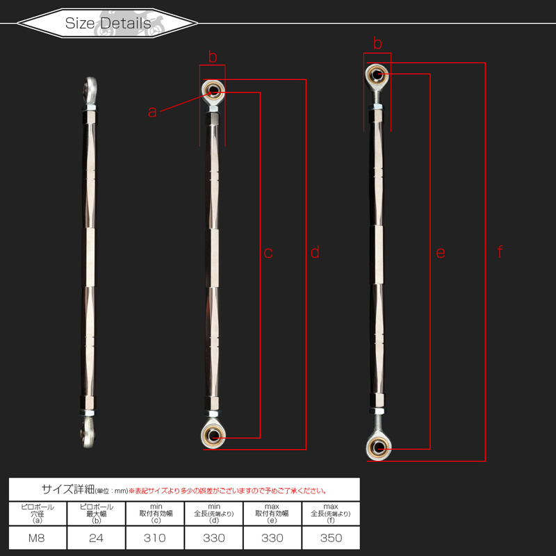 - 汎用 ブレーキ トルクロッド Lサイズ 取付幅310-330mm カラー シルバー タイプB ターンバックル ピロボール TH0081