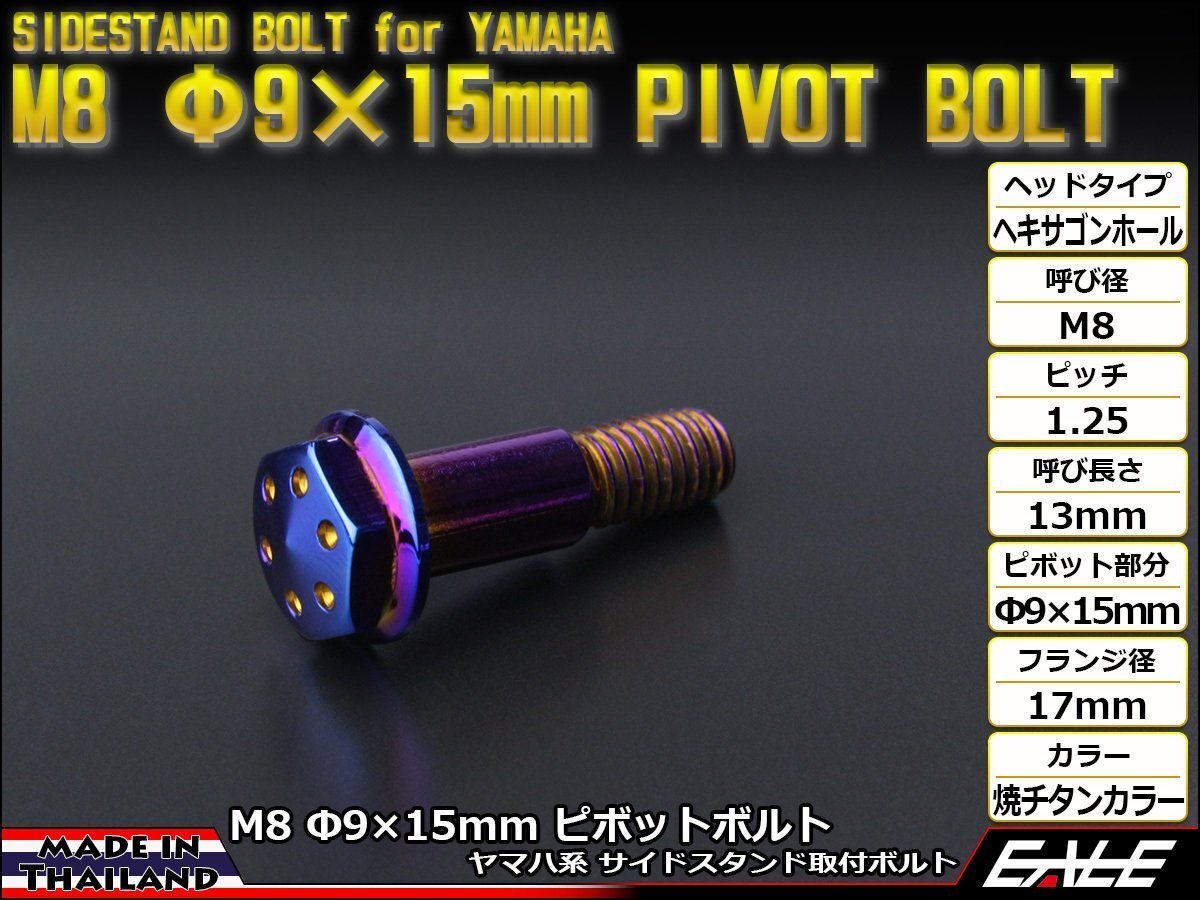> ヤマハ用 SUSステンレス 削り出し ヘキサゴンホールヘッド サイドスタンド ピボットボルト M8 P=1.25 Φ9×15mm 焼チタンカラー TH0448