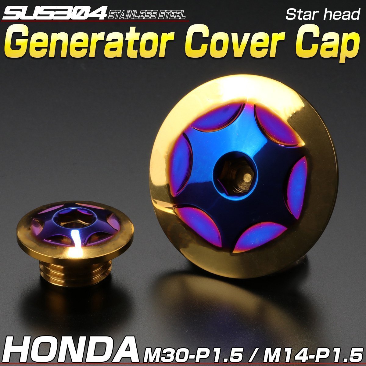 > ホンダ汎用 ジェネレータカバー クランクホールキャップ ポイントホールキャップ セット SUS304 スターヘッド チタン×ゴールド TH0306