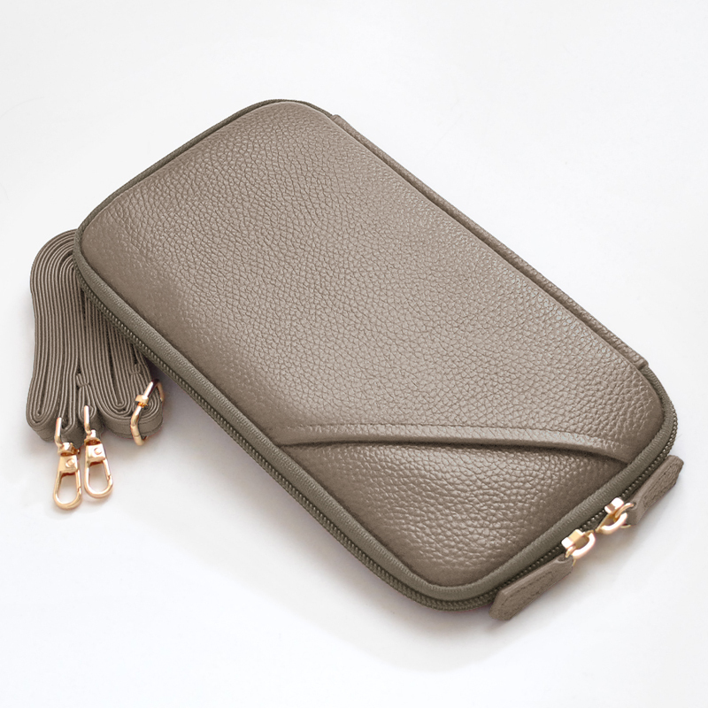 - 【MOMO】牛革2Wayショルダーポーチ AN-3220■人気レディースカラバリポーチ グレージュ×1個