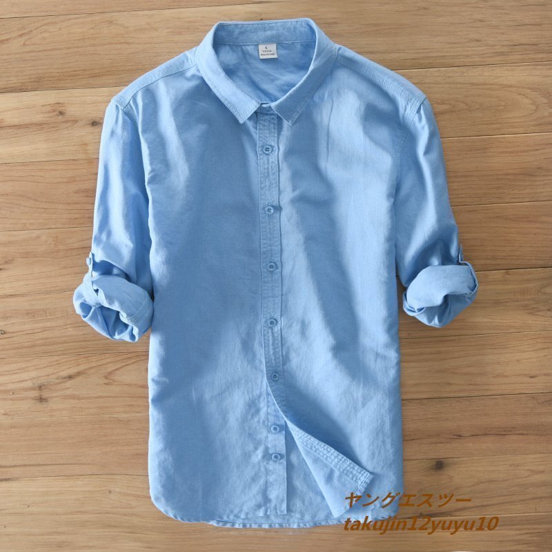 - 長袖シャツ メンズ 綿麻シャツ 新品 リネンシャツ 春夏 ワイシャツ 亜麻 サマー 清涼感 ビジネス 心地良し カジュアル スリム ブルー S-3XL