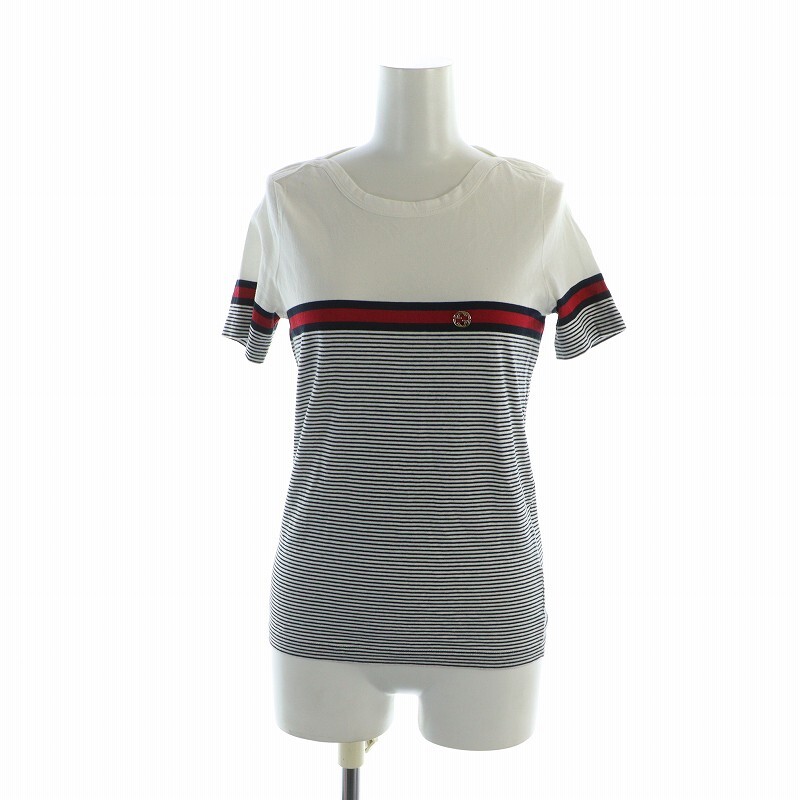 > グッチ GUCCI カットソー 半袖 Tシャツ ボーダー柄 ボートネック インターロッキング ロゴ XS 白 ホワイト 284463 X3680