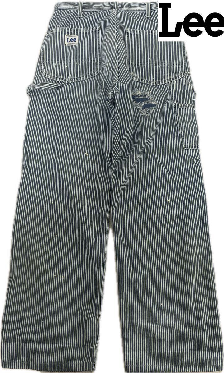 - 【雰囲気抜群】Lee クラッシュ ダメージ ヒッコリー ペインターパンツ リー ユーズド ヴィンテージ加工 LM1388 W28 メンズ アメカジ 古着