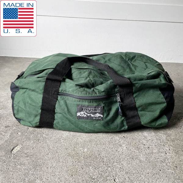 - 90s USA製 山タグ JANSPORT ナイロン ボストンバッグ 緑系×黒 1993年製 ジャンスポーツ アメリカ製 ビンテージ D152-61-0015ZV