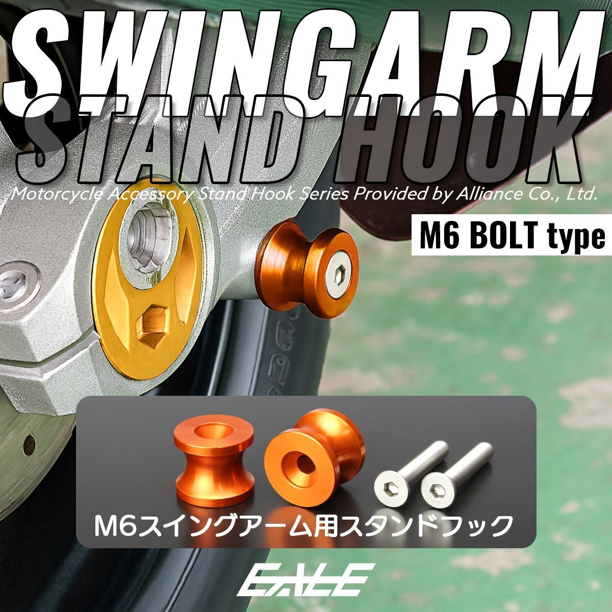 - リア スタンドフック6mm M6 アルミ削り出し レーシング/メンテナンススタンド スイングアーム取付 2個セット オレンジ S-306-O