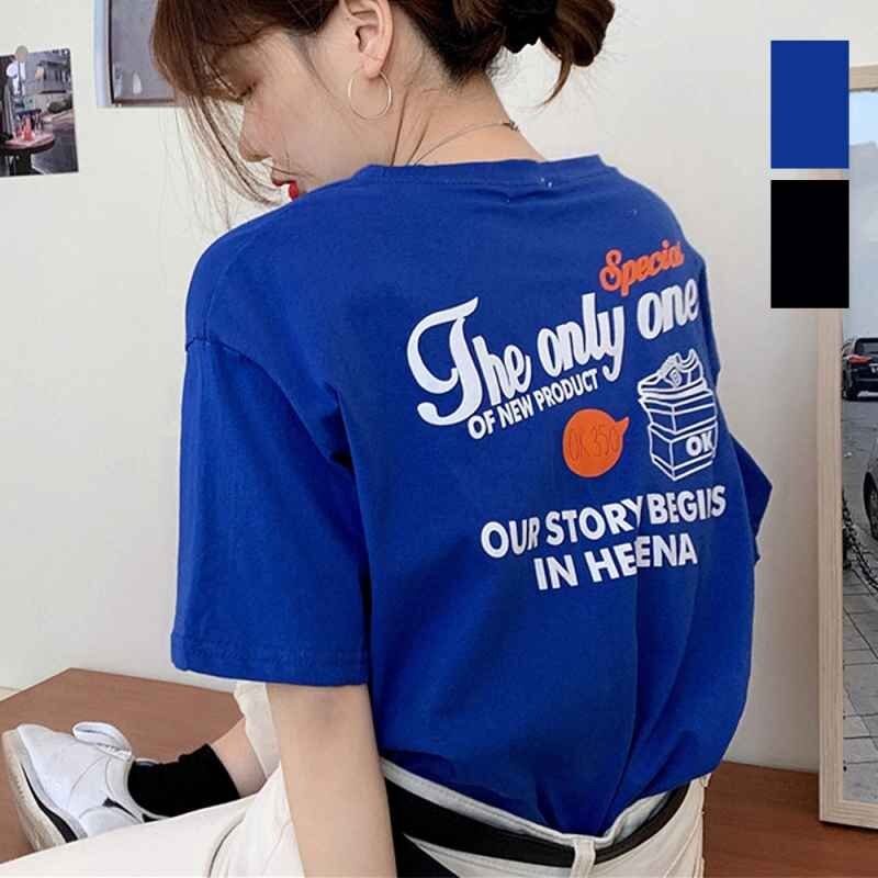 - プリントtシャツ バックロゴ 春夏 フリー ブラック