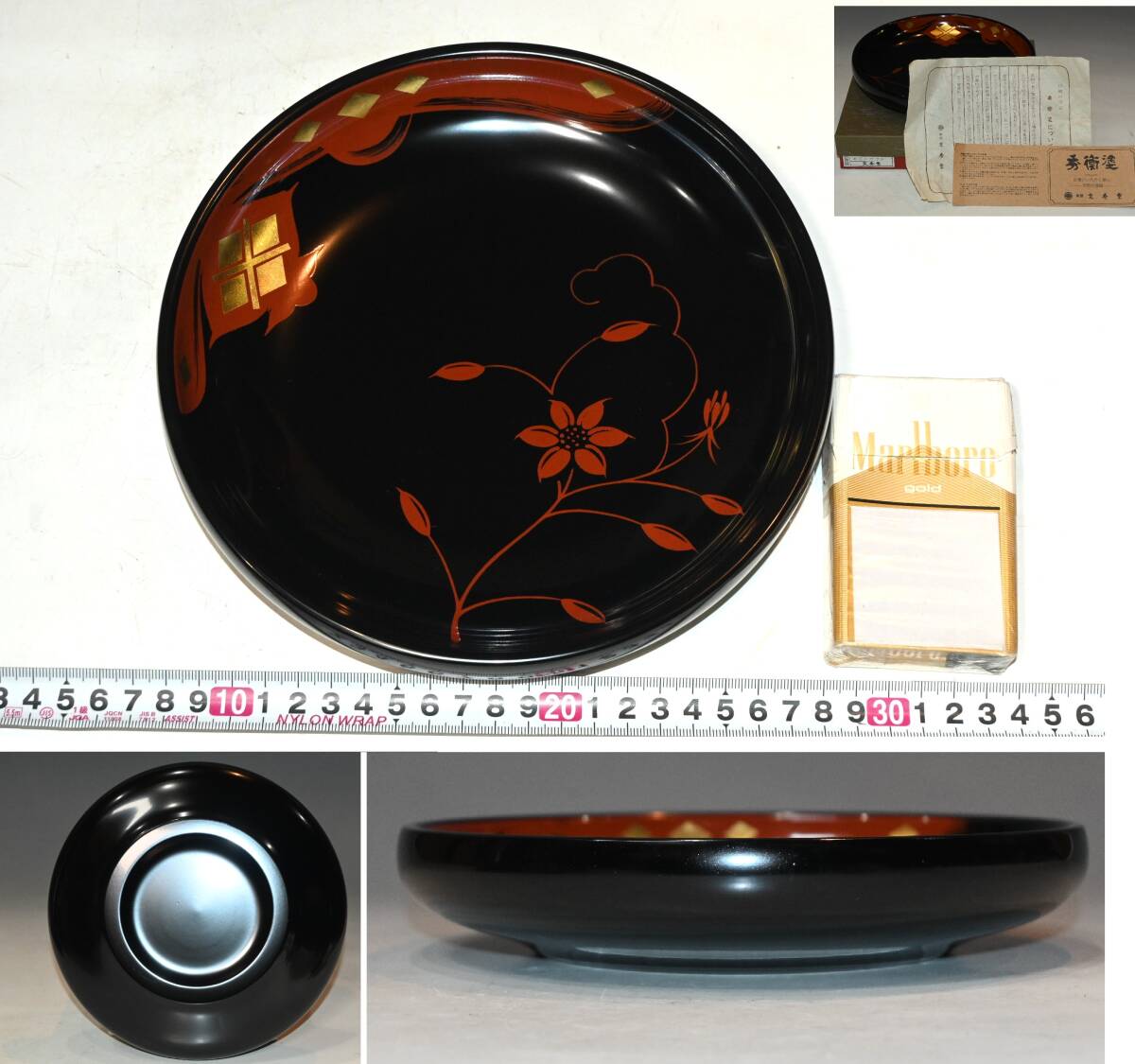 - 南部 文秀堂 秀衡塗 花文 お好み皿 箱・栞付 7号 径約21cm 金彩 木製 漆器 漆芸 茶道具 菓子器 盛鉢 深皿 伝統工芸