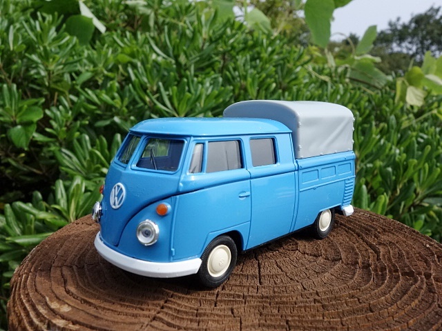 > 【送料450円】VOLKSWAGEN ダブルピックアップ タイプⅡ ワーゲンバスピックアップ ミニカー ブルー(生産終了)