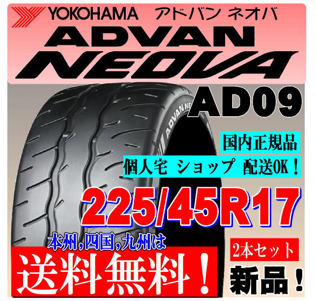 - 225/45R17 94W XL 送料無料 アドバン ネオバ AD09 ヨコハマタイヤ 2本価格 正規品 ADVAN NEOVA 個人宅 ショップ配送OK