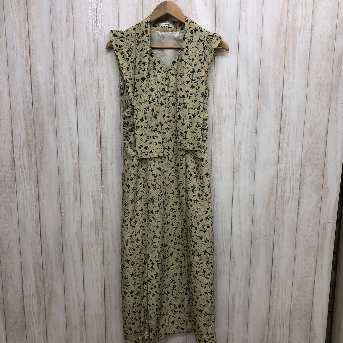 > SNIDEL スナイデル 花柄ワンピース サイズ0 フレンチスリーブ ロング ポリエステル イエロー系 レディース YF510
