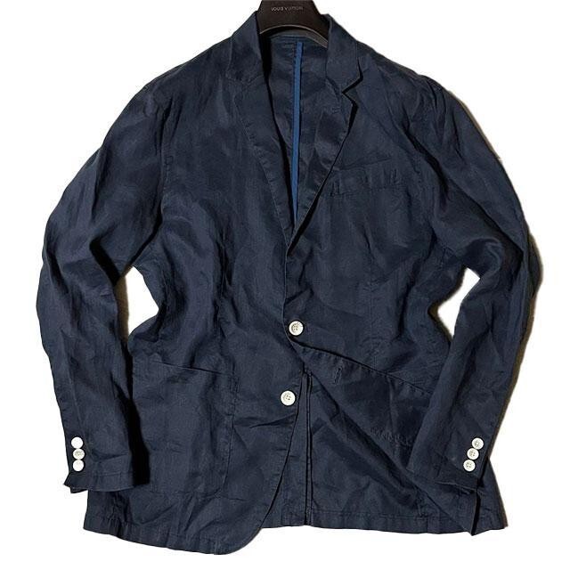 - NAVY 清涼リネン テーラードジャケット ネイビー XL 麻100% 美品 E074