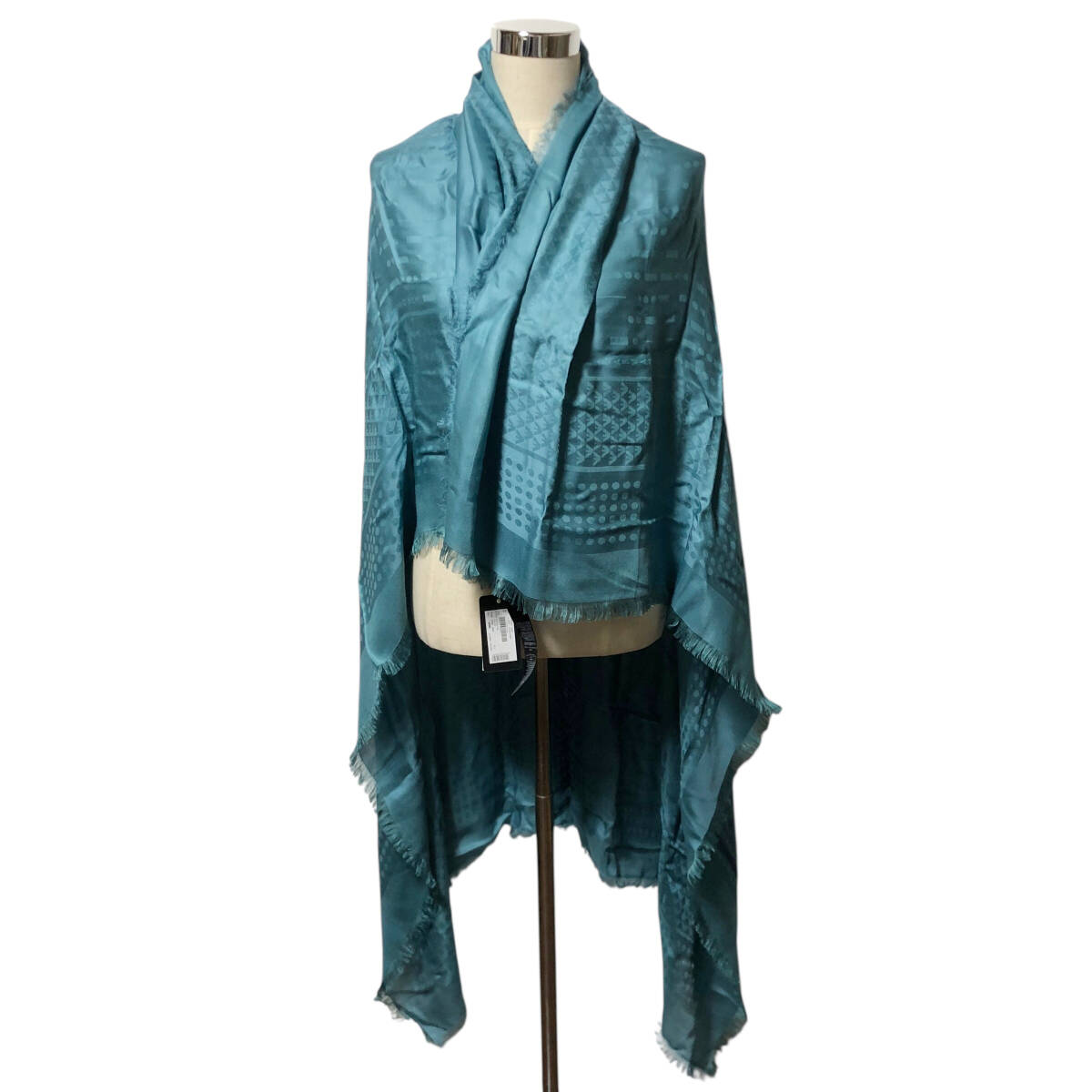 > EMPORIO ARMANI エンポリオアルマーニ 大判 ショール ストール ロゴ 総柄 水色 レーヨン イタリア製 BI1