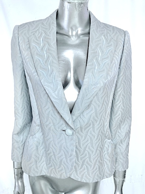 - ☆二点落札で送料無料!J6 jun ashida ジュンアシダ テーラードジャケット 11 M-L 水色 ジャガード織 ビーズボタン フォーマル セレモニー