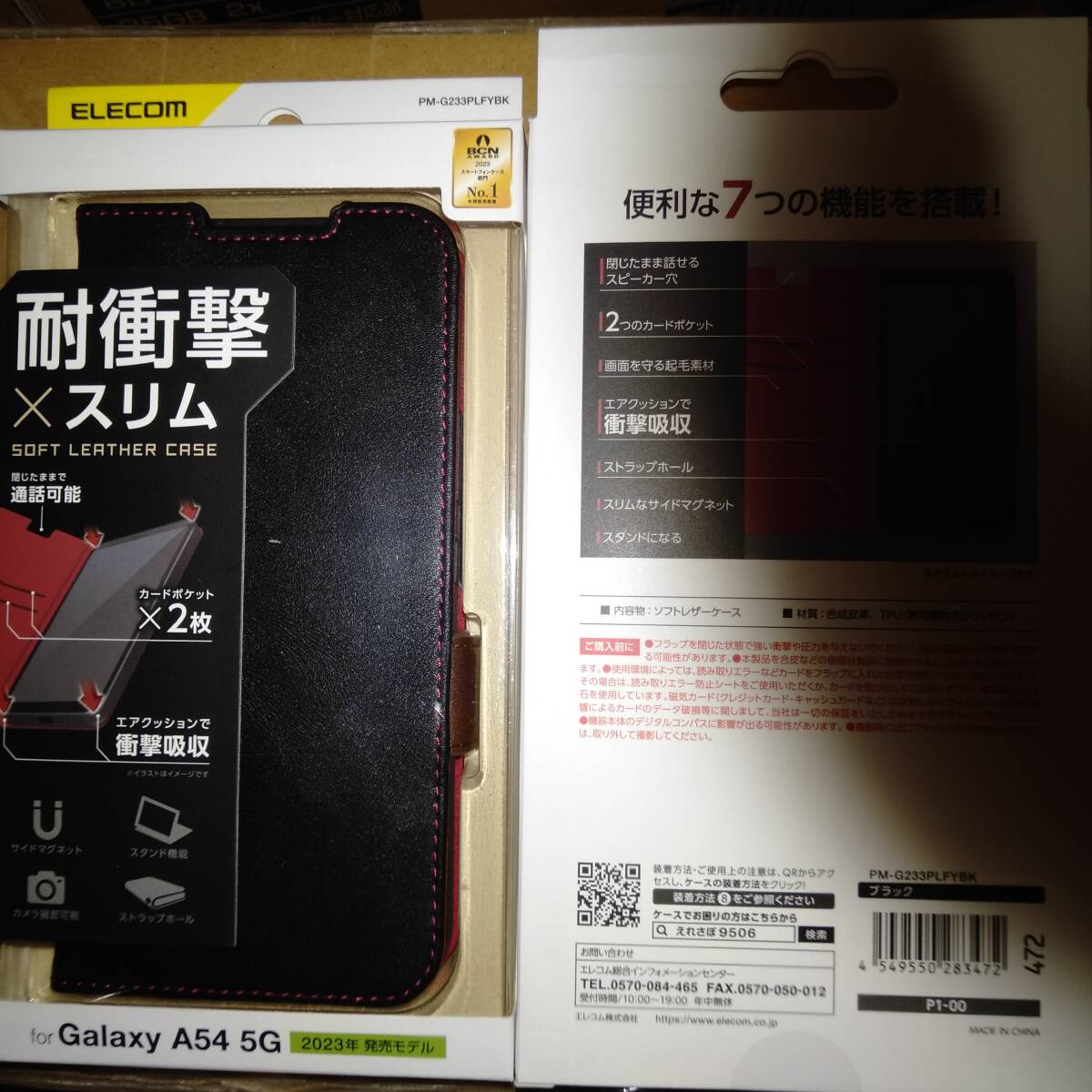 > ELECOM Galaxy A54 5G SC-53D SCG21 ソフトレザーケース 磁石付 耐衝撃 ステッチ ブラック 便利な機能多数搭載した革の様なやわらかな風合