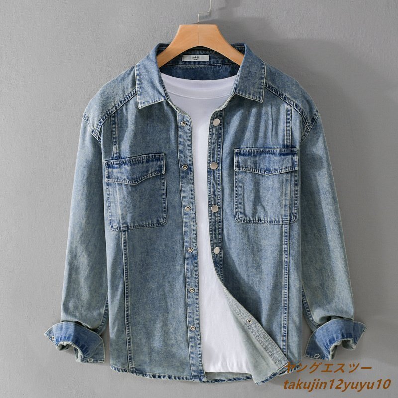> 極美品 デニムシャツ メンズ 長袖シャツ 超希少 ヴィンテージ 新品 デニムジャケット ライダース 個性 トレンド カジュアル 心地良し L