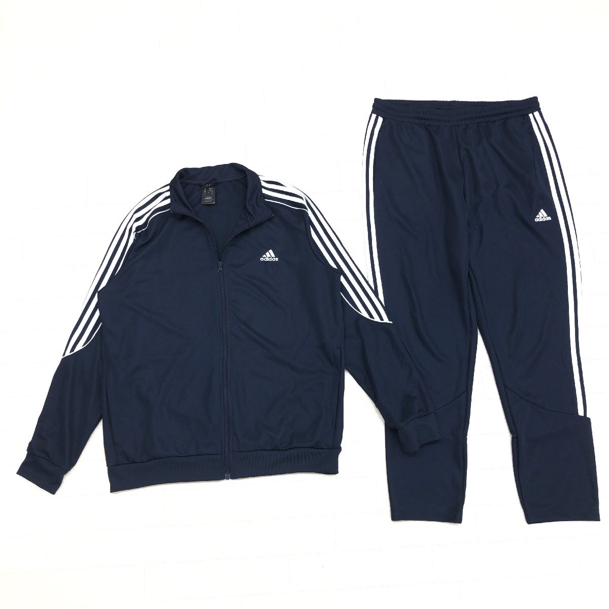 - ●adidas アディダス ロゴ刺繍 3ストライプ ジャージ 上下セットアップ 2XL 濃紺 ネイビー ジャケット パンツ 特大 大きいサイズ 3L メンズ