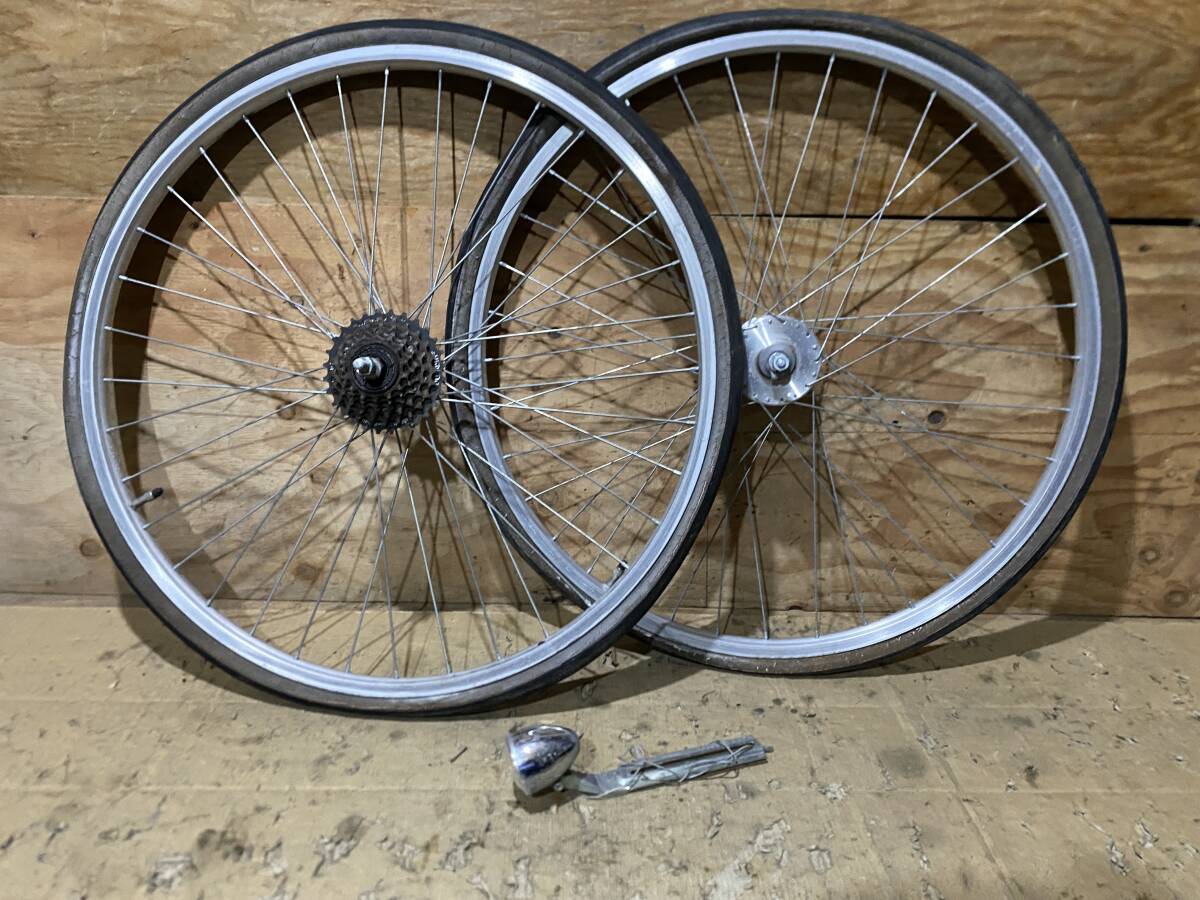 > 26 × 1 3/8 ダイナモハブ ライト付き 6速 ホイール 前後セット 中古パーツ