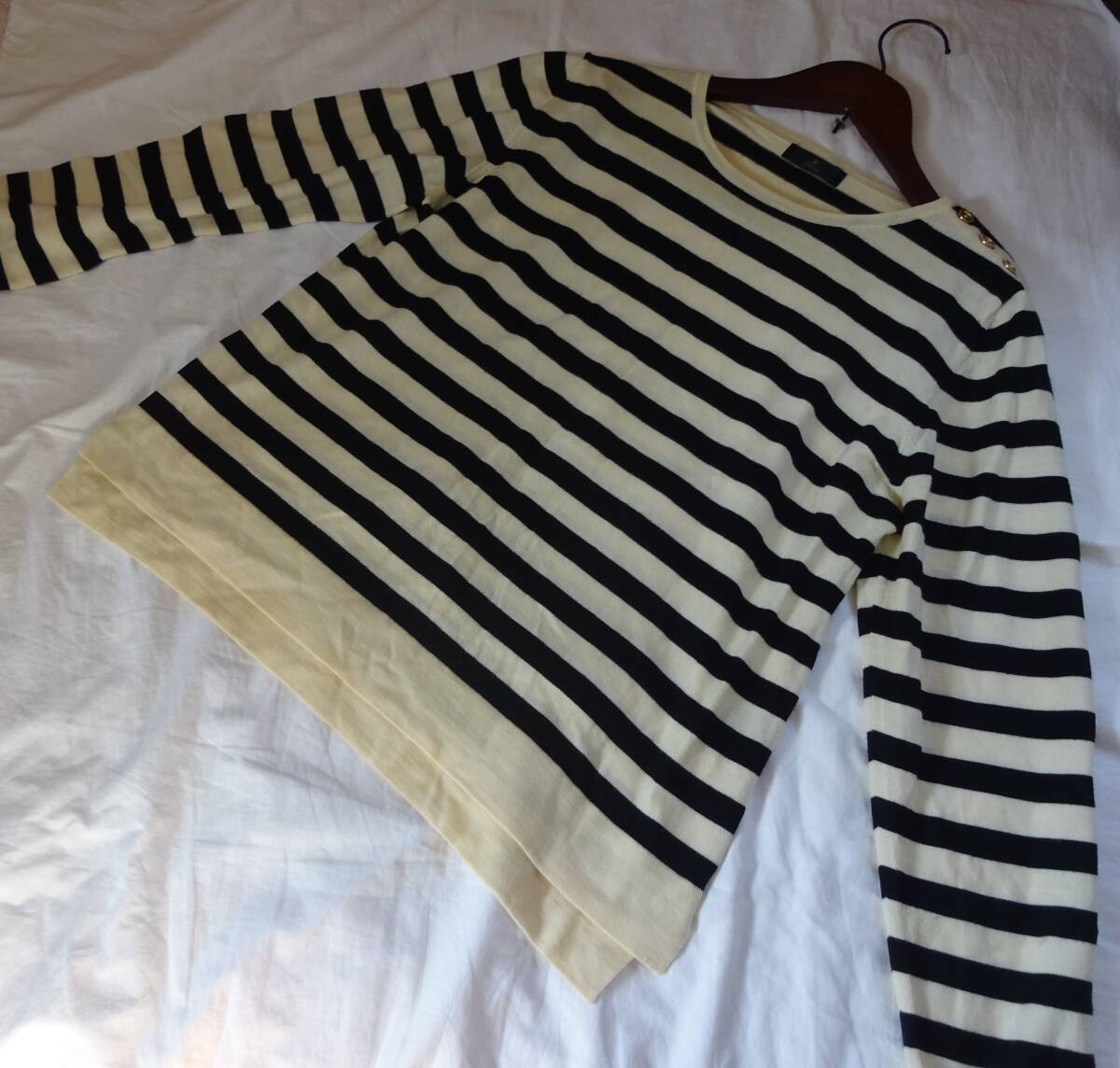 - INED イネド ボーダーニット 15号 大きいサイズ クリーム×黒