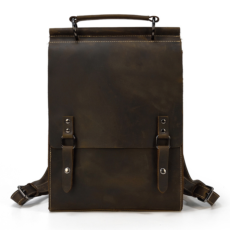 - 本革 ビンテージ風 ロールトップ バックパック リュック メンズ レディース 通勤 通学 多機能