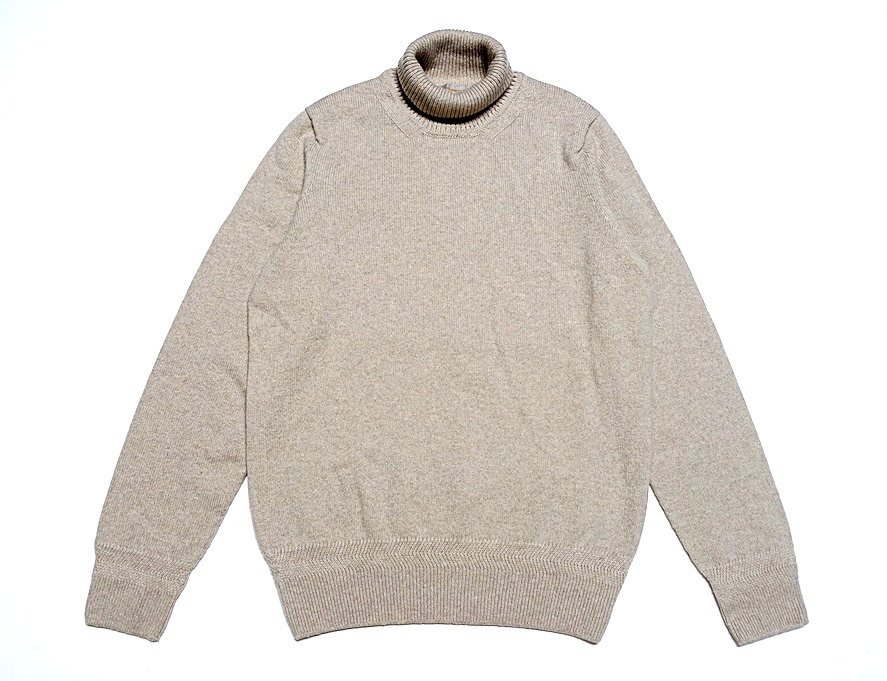 > 定価6万 美品 JOHN SMEDLEY ジョンスメドレー IMPERIAL KASHMIR ミドルゲージ タートルネック ニット カシミヤ ウール ベージュ系 メンズ M