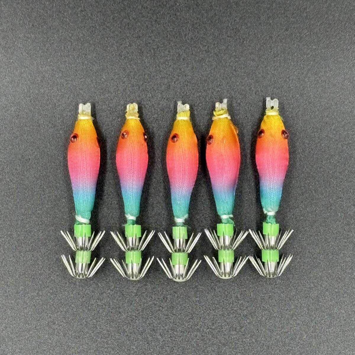 > 9156 やわらかいボディ 蓄光タイプ イカ スッテ 60mm オレンジグリーン 5個セット サビキ 仕掛け スルメイカ ヤリイカ ケンサキイカ