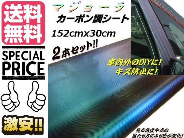 > マジョーラ カーボンシート カー ラッピング 青 紫 緑 152cm×30cm 2枚 DIY 艶有 光沢 伸縮 エア 抜き 溝有 送料無料/6