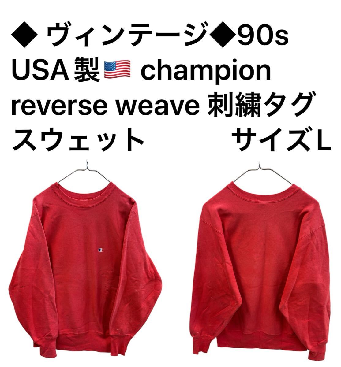 > ◆ ヴィンテージ◆90s USA製 champion reverse weave 刺繍タグ スウェット サイズL
