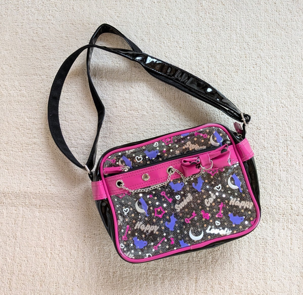 - ショルダーバッグ 女の子 小学生 ブラック エナメル 平成レトロ
