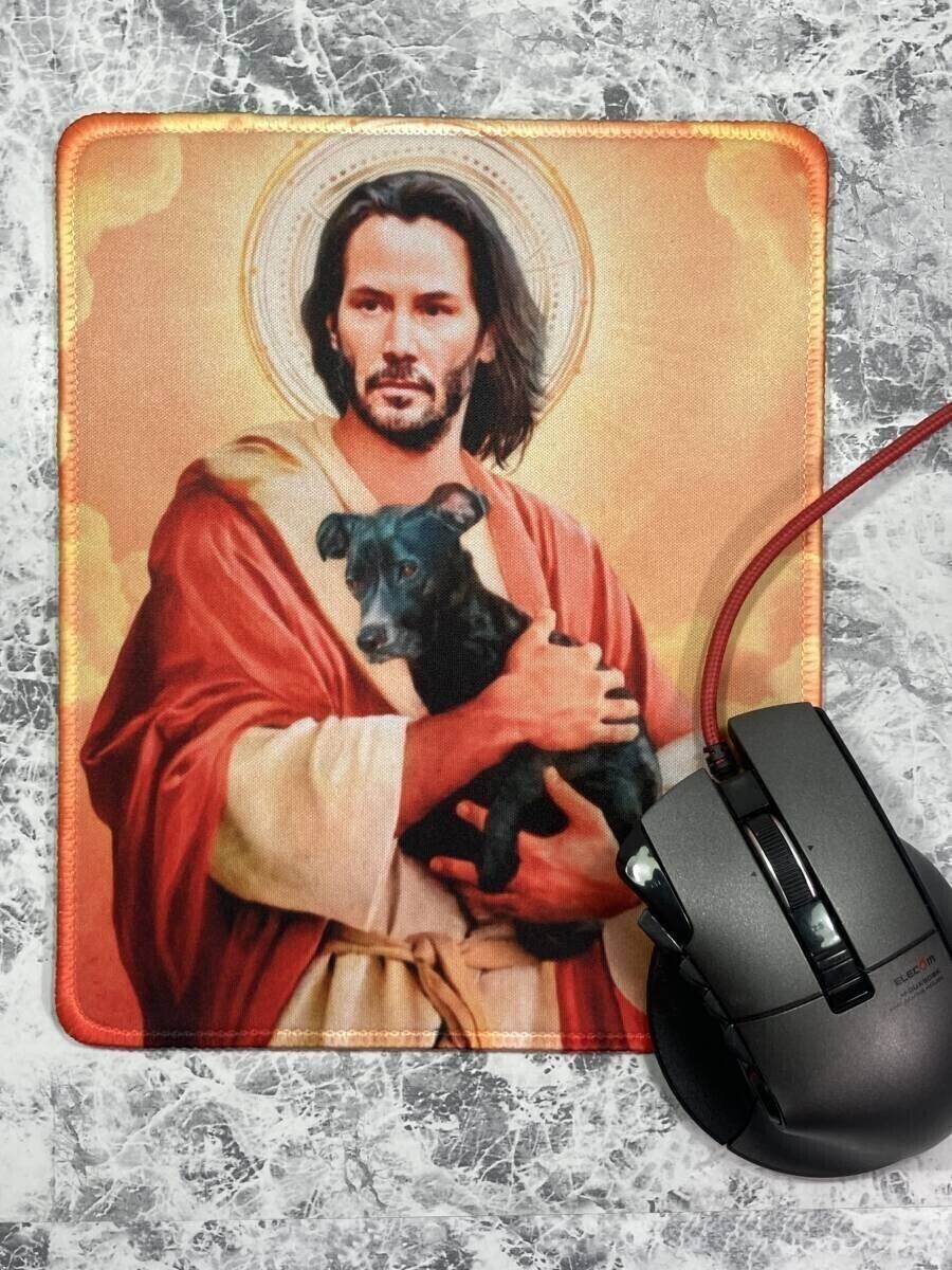 - ◆同梱発送可◆「聖人/キアヌ・リーブスと犬 マウスパッド」fire_sale 【タグ:映画】