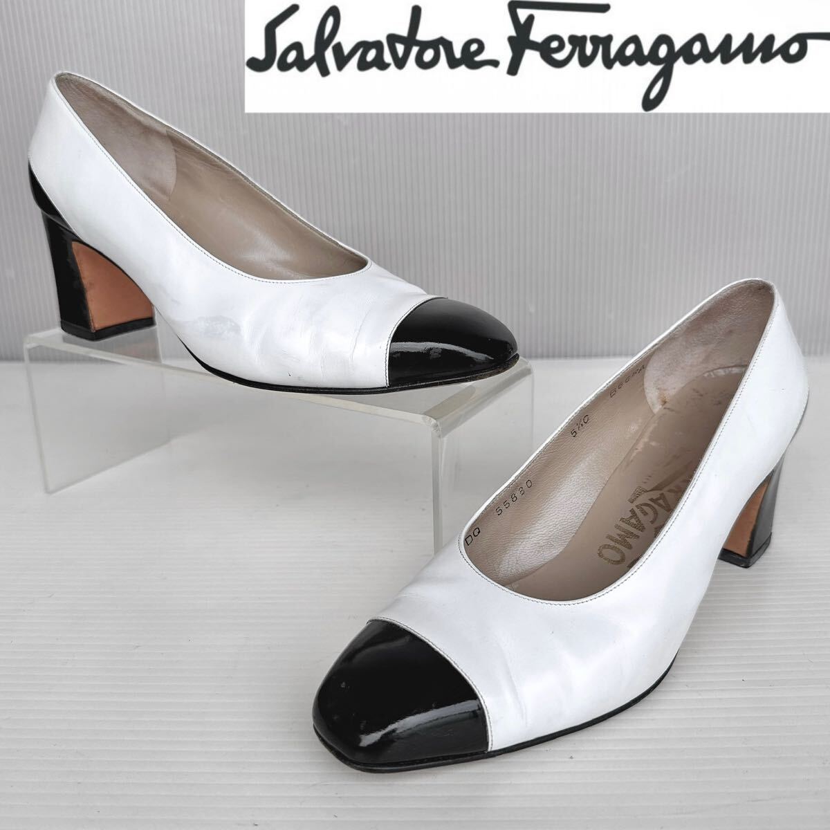 > Salvatore Ferragamo サルヴァトーレフェラガモ バイカラー パンプス ハイヒール サンダル シューズ レザー 白 黒 靴 レーディス 5.5C