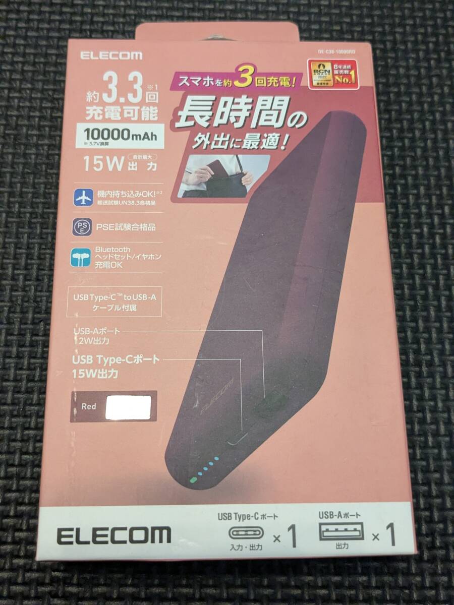 > ◎0709u0522 エレコム モバイルバッテリー 10000mAh 15W 2台同時充電 出力2ポート (Type-C/USB-A) 入力(Type-C) レッド DE-C38-10000RD