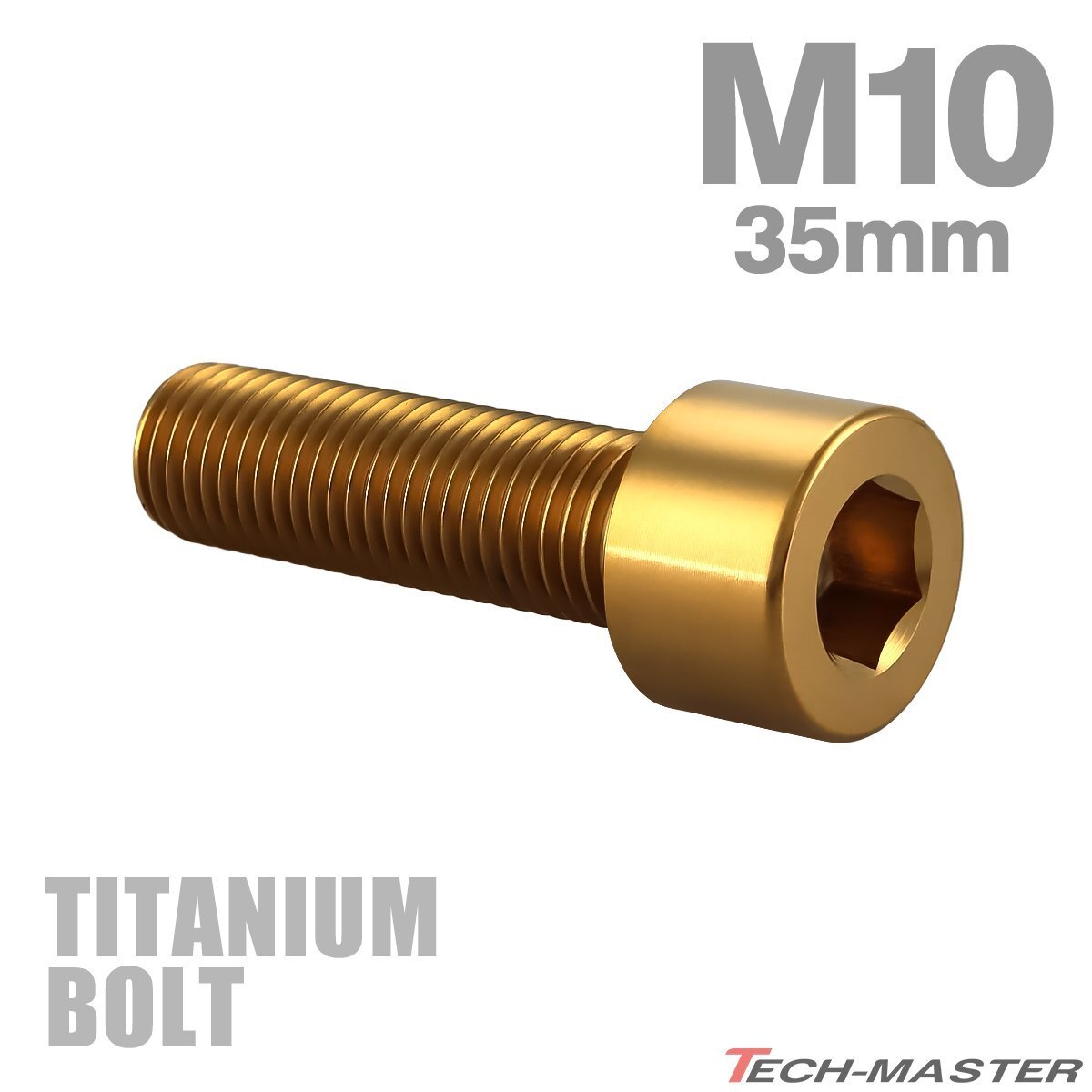 - M10×35mm P1.25 64チタン合金 スリムヘッド キャップボルト 六角穴付き ゴールドカラー 1個 JA2502
