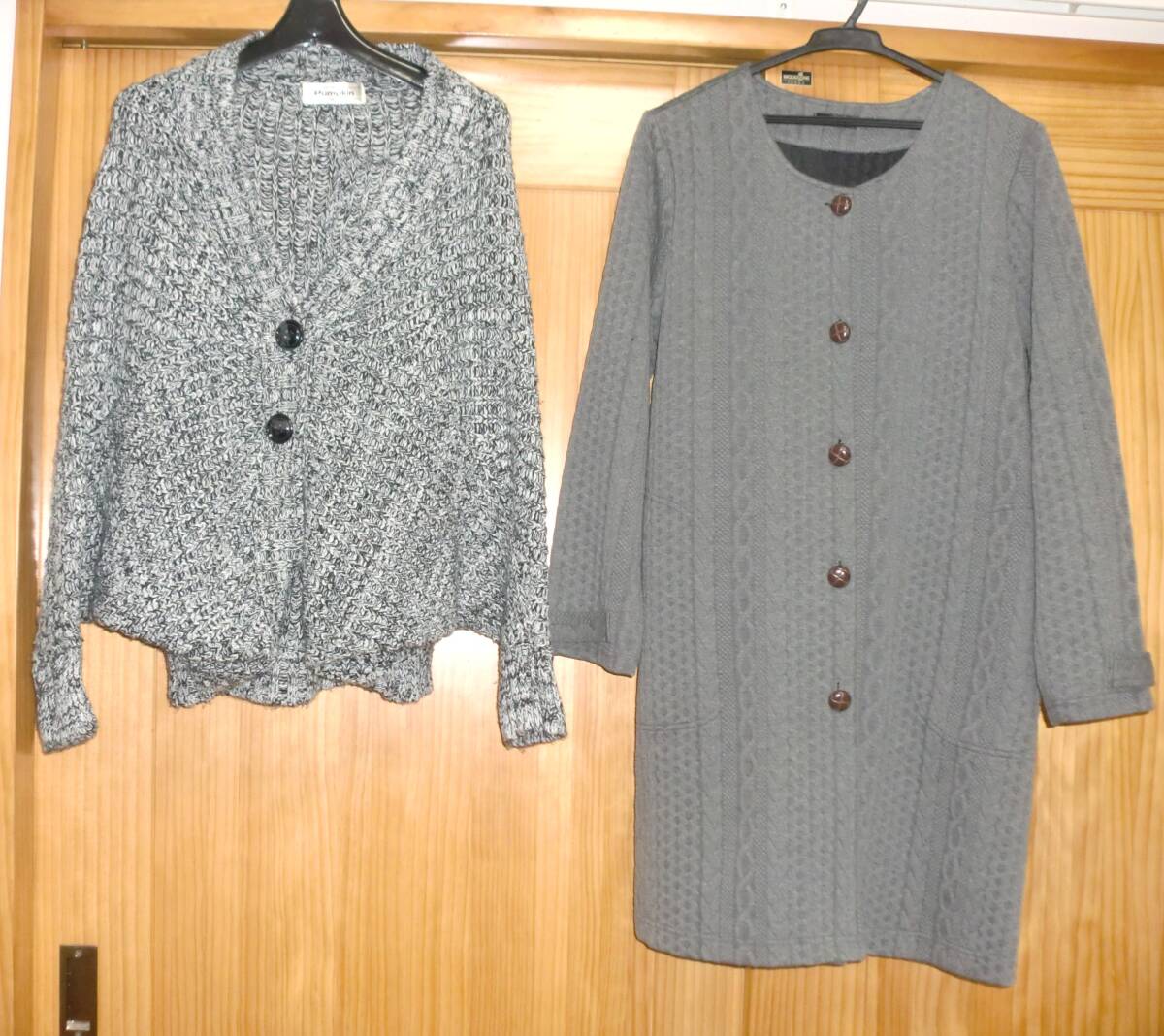 - コート2点まとめて② グレー系 ロングニットコート&変形デザインPUMPKINニット 定形外等まとめて発送可